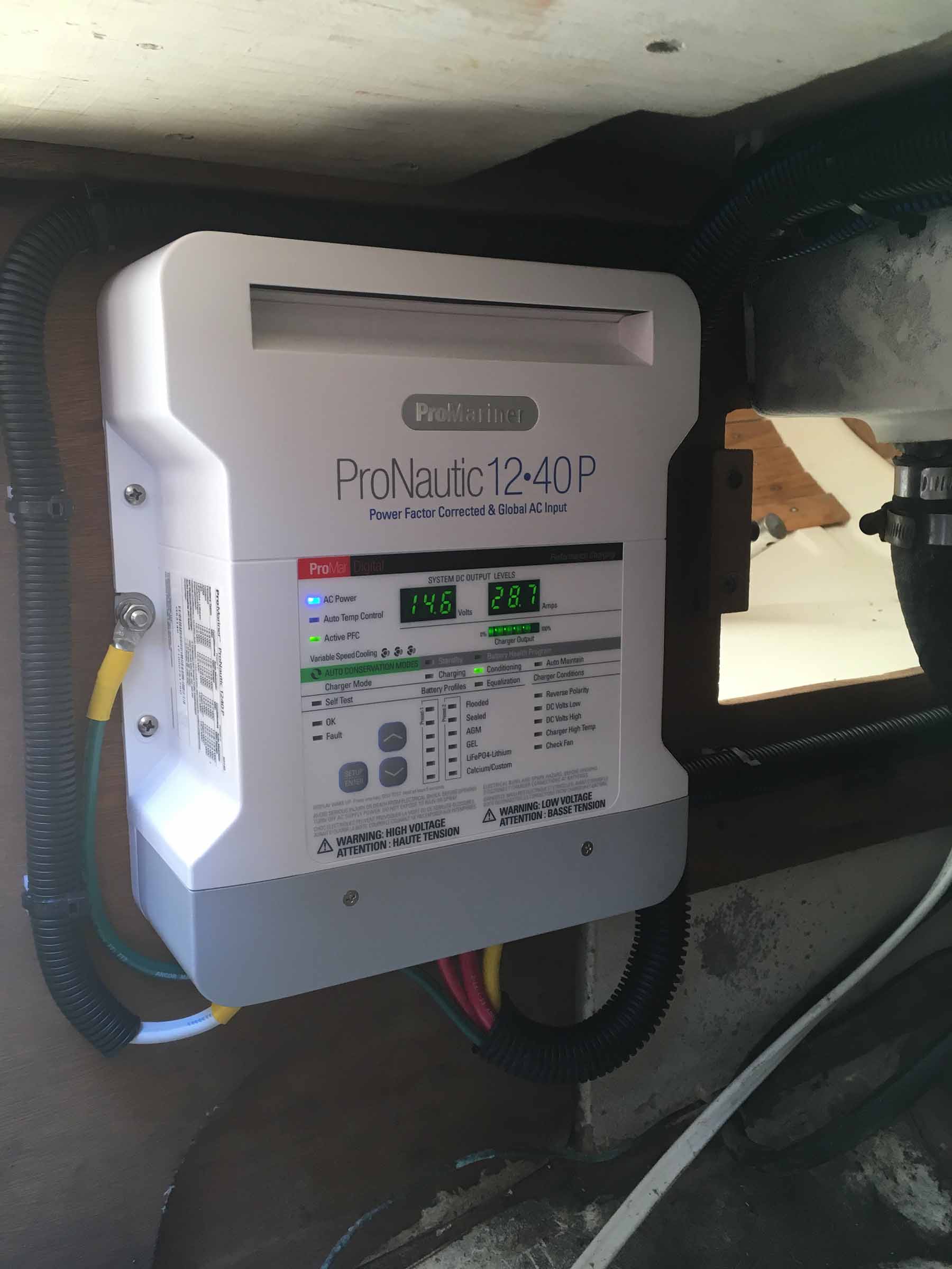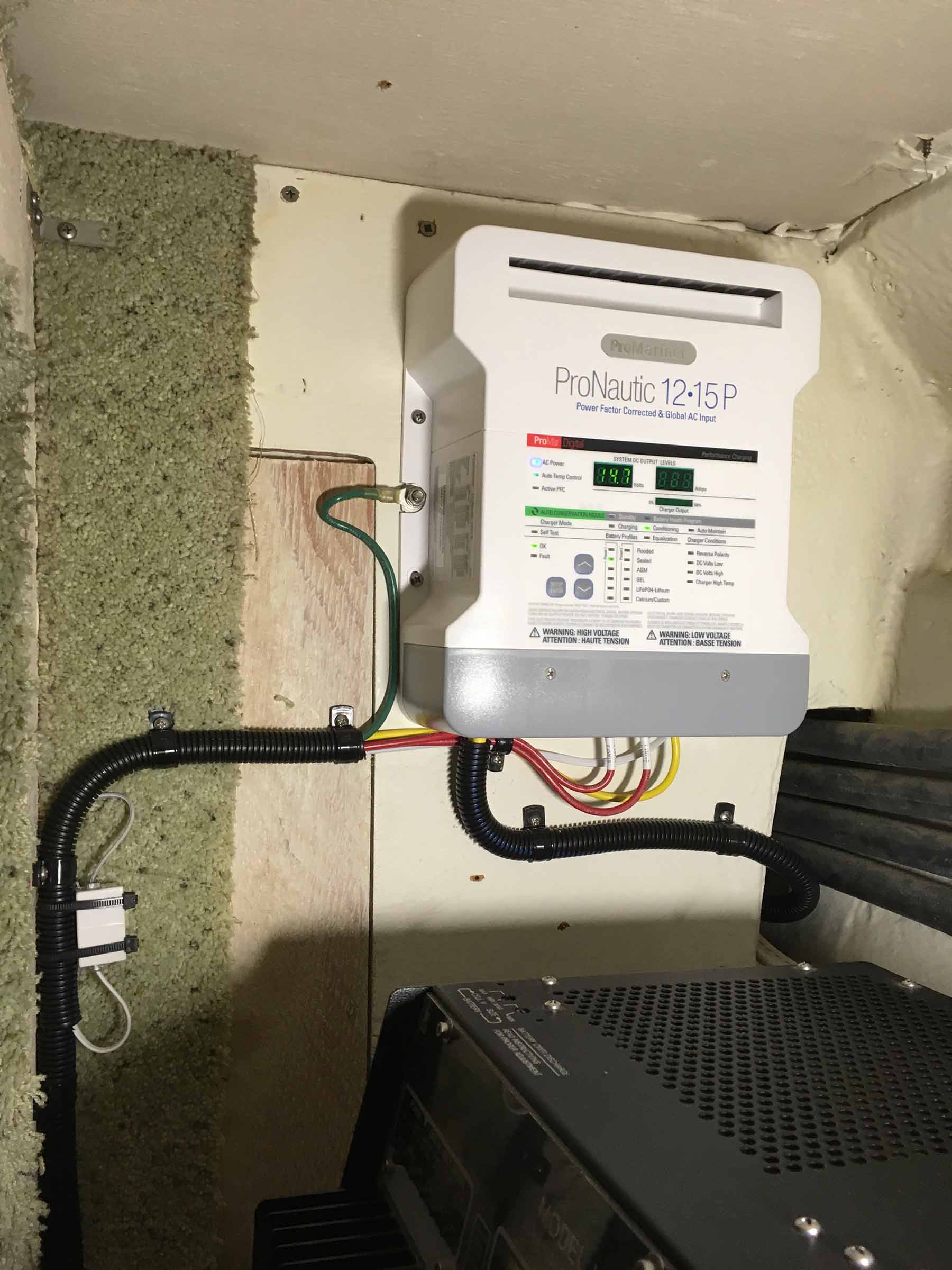We install 240/120V battery charging systems in addition to DC to DC charging solutions for marine vessels. We have experience with Victron, Mastervolt, Pronautic charging systems and Balmar alternator external regulation systems. These systems are often necessary as vessel technology and power requirements increase and additional battery capacity is required. The most common hurdles are often space constraints, and require separately located batteries to be installed. In some instances, bank voltages differ and require a smoother output. We have experience overcoming many common (and some uncommon) issues to provide a solid and reliable means of keeping batteries charged, whether at the dock, anchored or underway.